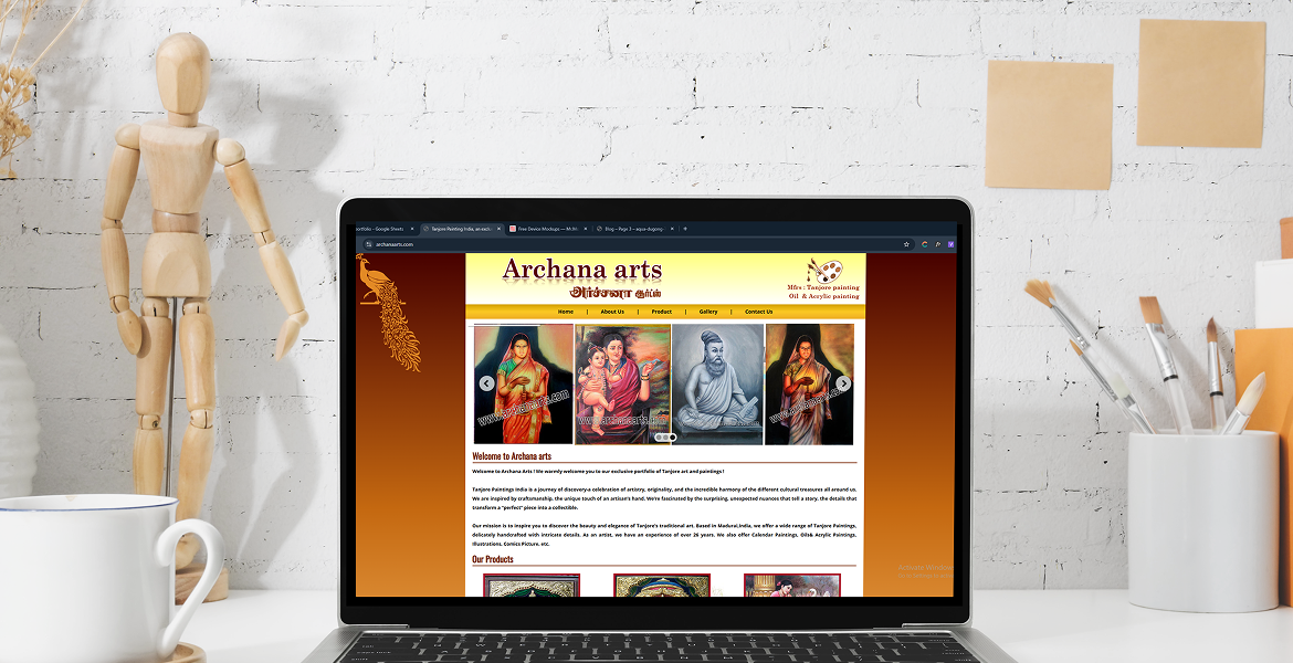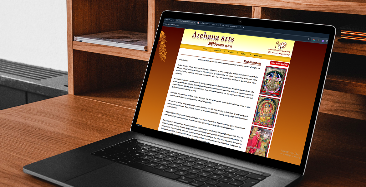 The completed website provides Archana Arts with a professional digital presence that effectively showcases its handcrafted Tanjore paintings and artistic portfolio. Visitors can easily explore the gallery, learn about the traditional painting process, and view different artwork categories available from the studio.