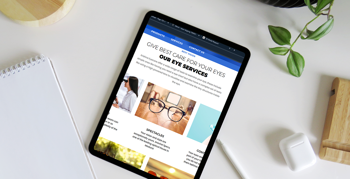 The goal was to create a digital platform where customers can explore different types of spectacles, lenses, frames, and sunglasses while learning about available eye testing services. The website was structured to present optical products and services in a clear and visually engaging format.