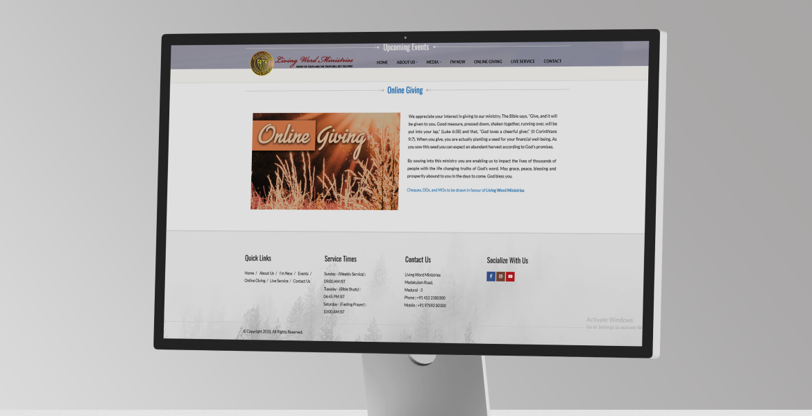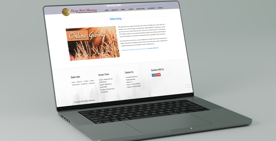 We began by understanding the ministry’s vision, congregation needs, and communication flow. A clear information architecture was created to structure sermons, ministry activities, and announcements. The UI design emphasized clarity and spiritual warmth while maintaining usability. The website was developed with a scalable backend for ongoing updates and optimized for speed and cross-browser compatibility.