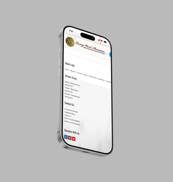 We developed a structured and welcoming layout that clearly presents church services, ministry programs, and announcements. Key sections such as sermons, event updates, and contact information were organized for quick access. A CMS-based backend was implemented to allow easy content updates. The website was optimized for responsiveness and performance to ensure seamless browsing on mobile and desktop devices.