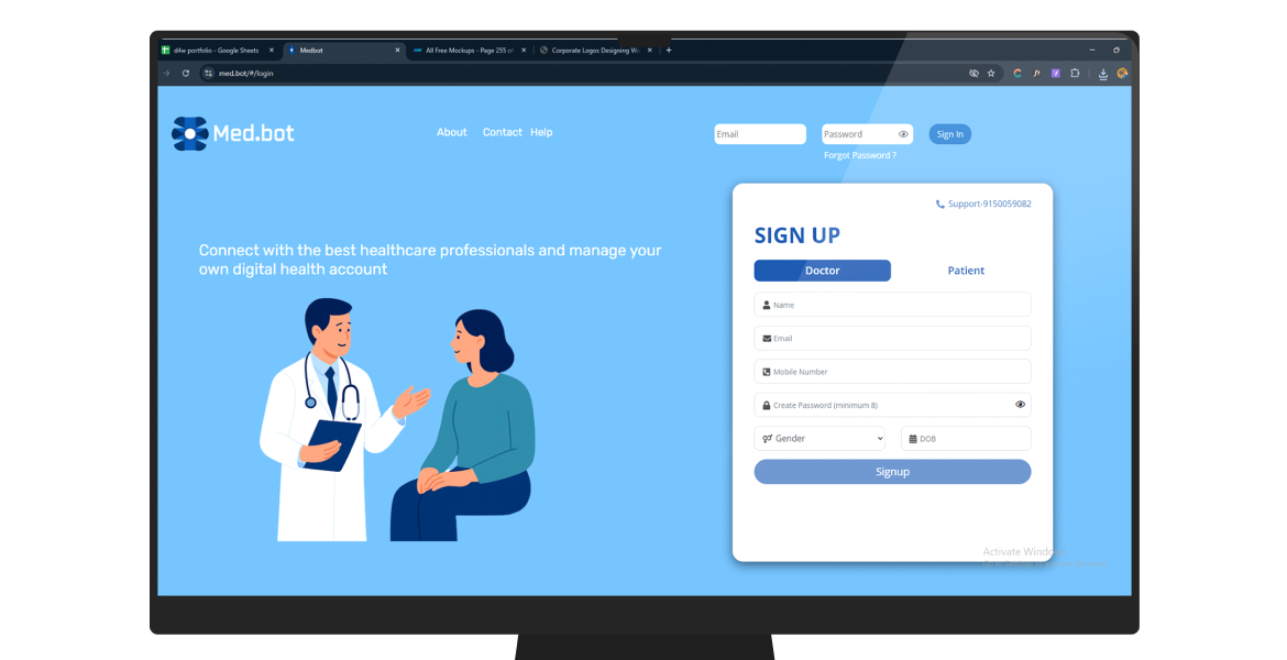 The major challenge was creating a healthcare platform that is both easy for patients to use and reliable for healthcare professionals. the platform was designed with a clean interface, simplified login system, and structured patient interaction workflow. The interface allows users to quickly sign up, log in, and connect with healthcare services. By implementing an intuitive layout and responsive design, the platform ensures that users can access healthcare support from any device.
