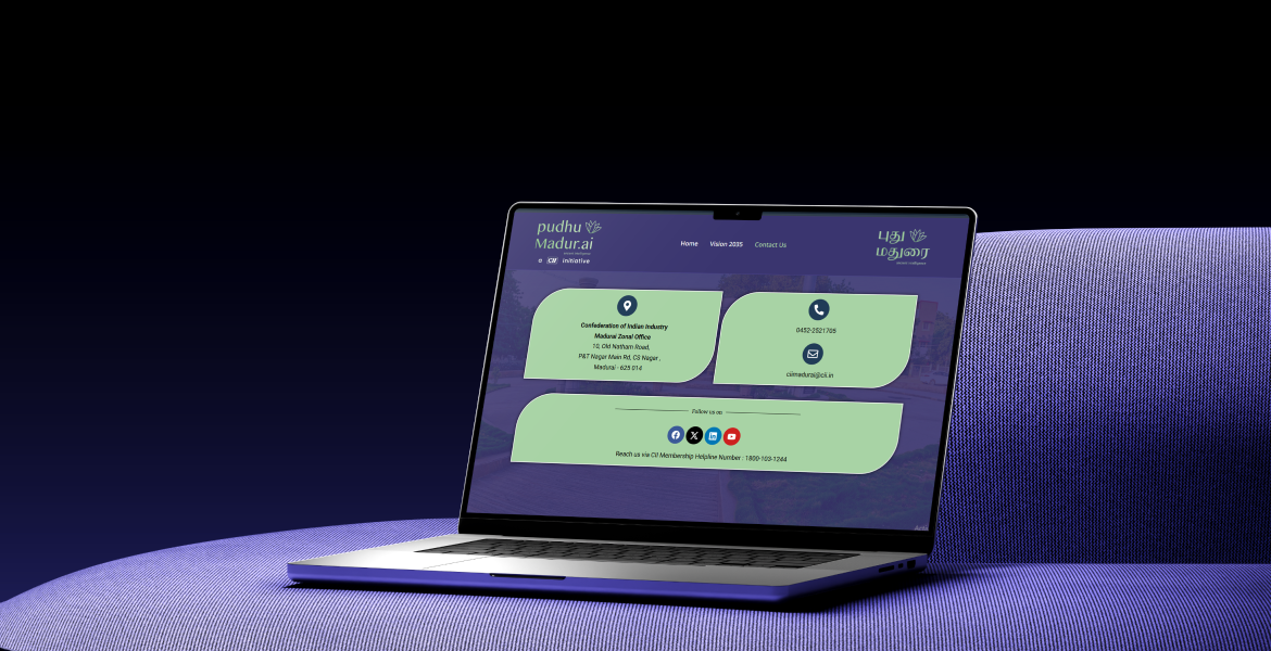 Our process began with understanding the core objectives of the PudhuMadurai vision initiative and identifying key content areas that required structured presentation. We developed a clear information architecture to organize vision documents, development strategies, and supporting content effectively. A modern and professional UI was designed to reflect growth, sustainability, and civic innovation. The website was developed using WordPress with a scalable content framework for easy updates. Finally, we optimized performance, responsiveness, and overall usability to ensure smooth access across devices.ion was optimized for clarity, speed, and conversion, ensuring both desktop and mobile users experience seamless navigation.