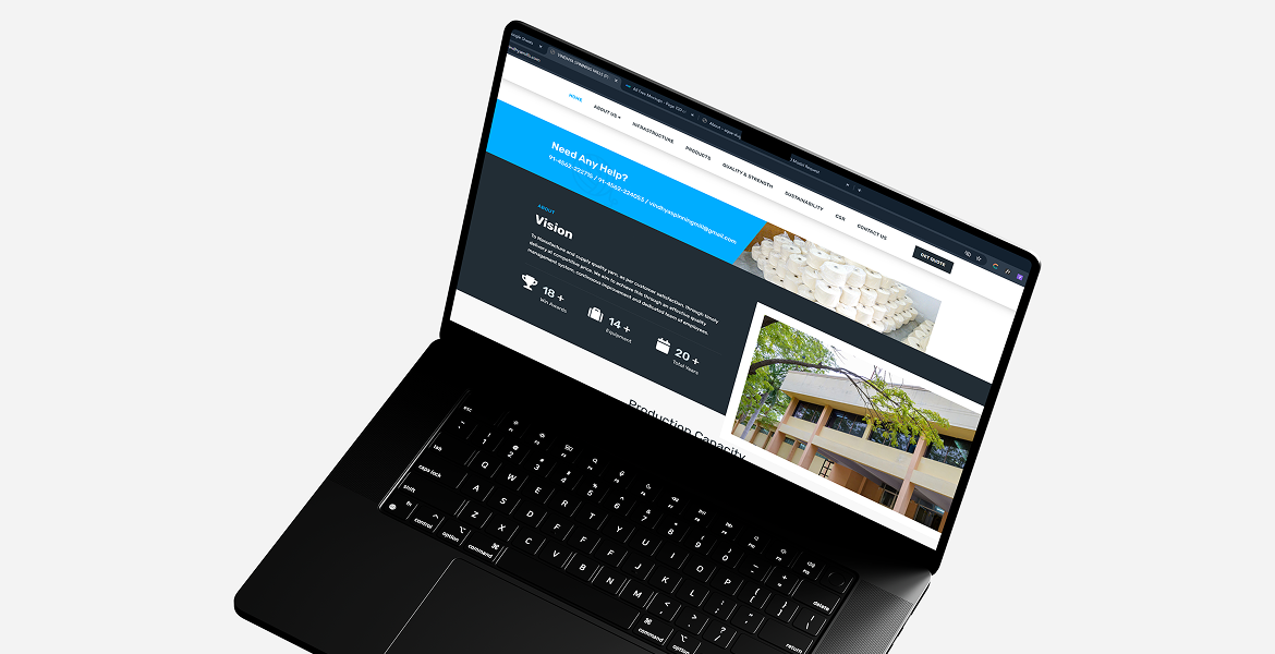 The completed website provides Vindhya Spinning Mills with a strong digital presence that effectively showcases its cotton yarn manufacturing expertise. Visitors can easily explore the company’s production capacity, infrastructure, and yarn product categories. The structured design improves accessibility for textile buyers and international partners looking for reliable yarn manufacturers. The platform now communicates the company’s commitment to quality production, modern machinery, and sustainable manufacturing practices in the textile industry.