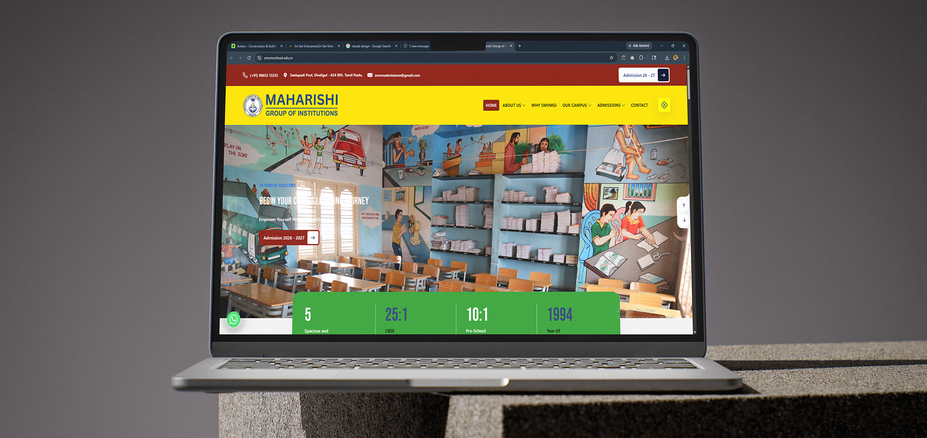 The goal was to reflect the school’s strong educational foundation, advanced infrastructure, and student-centric learning environment through a clean and structured website.